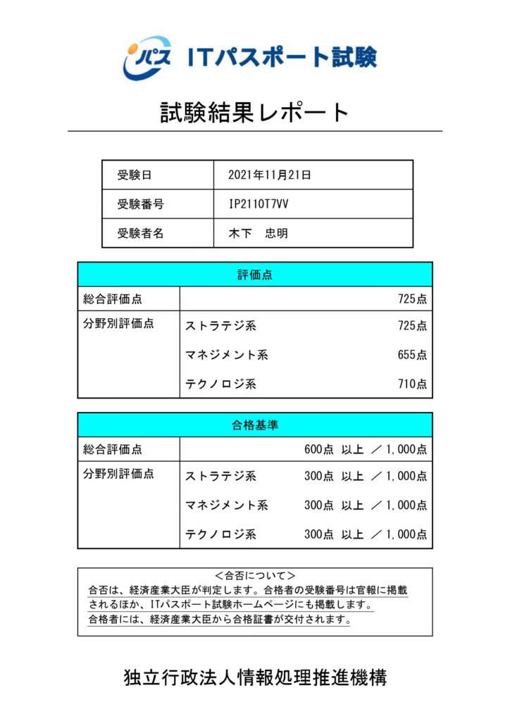 今月1日に取得した簿記3級に続き、ITパスポートも取得しました。