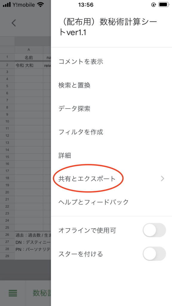 ログインができましたら、下のリンクから数秘術計算シートを表示します。